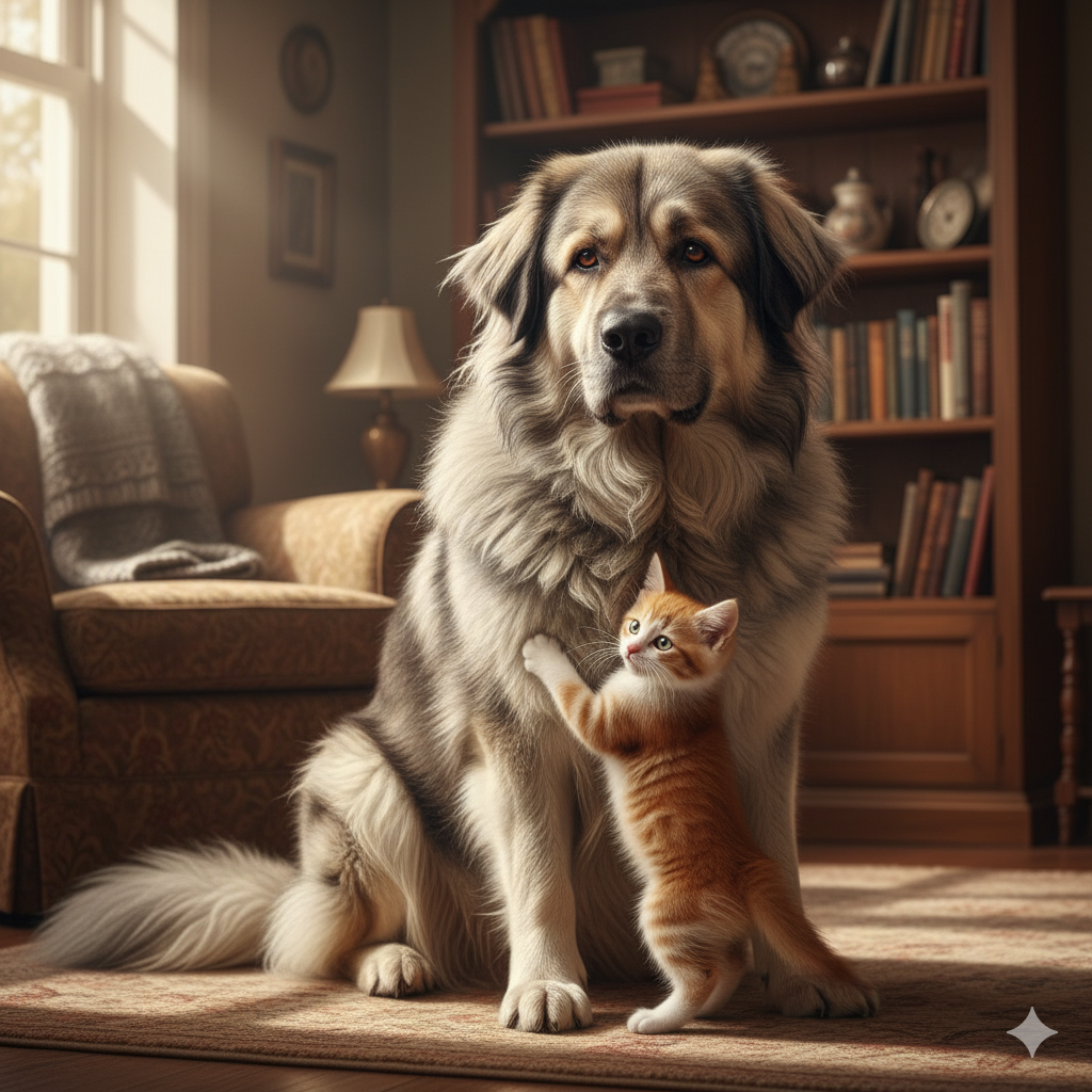 Так Гоша оказался у Евгения Палыча дома. И пусть котенок еще совсем малыш – даже толком ходить еще не умеет, но пес почувствовал себя защищенным. Ведь кошка всегда может прогнать любую тоску, человек ты или собака.
