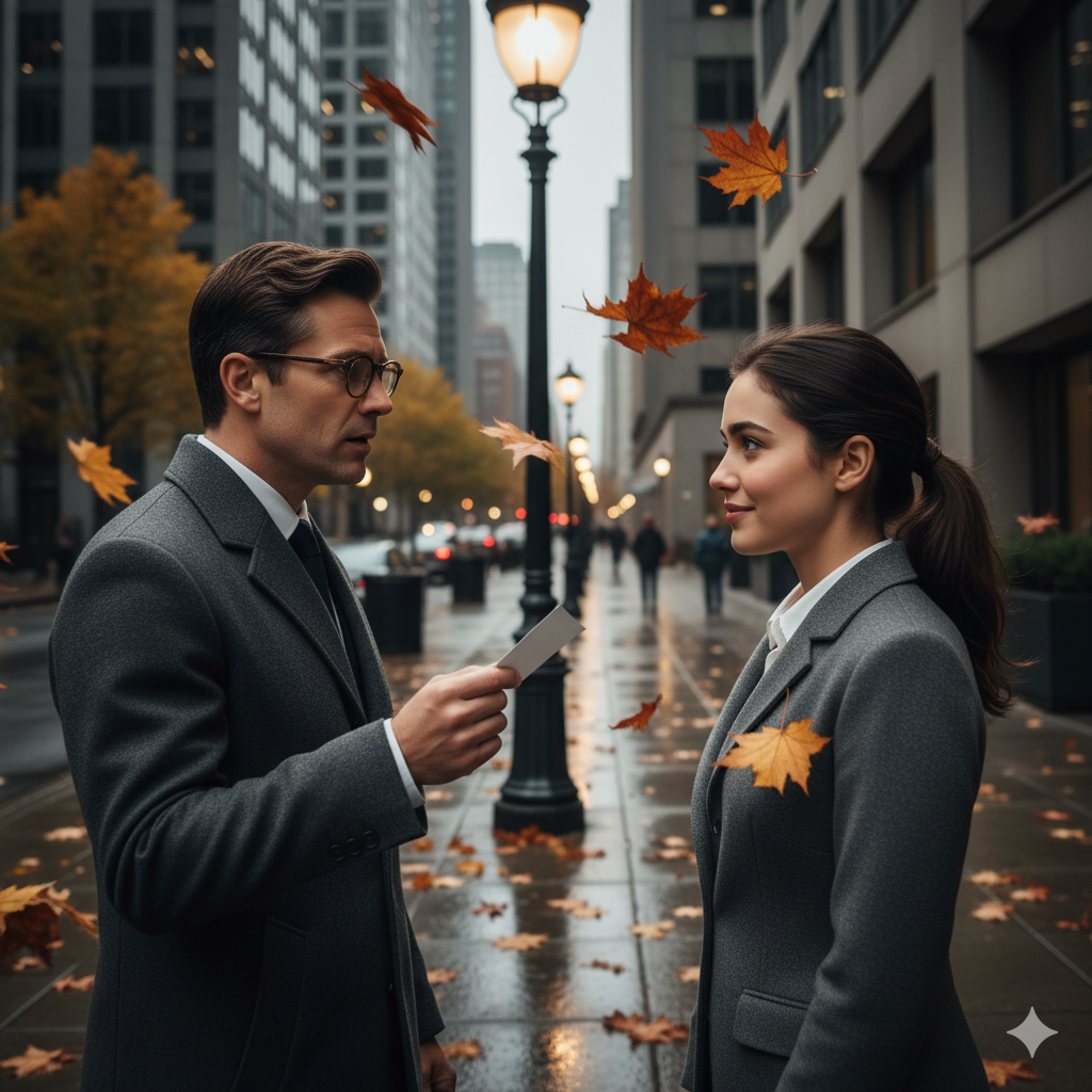 Сергей Иванович шагал по тротуару, где осенний ветер гнал листья, словно спешащих прохожих. Его пальто развевалось, а в голове крутился отчёт для завтрашнего совещания. Конец рабочего дня в офисе инженерной компании всегда был похож на выдох после долгого бега. Он уже видел впереди машину, припаркованную у серого здания, когда рядом возникла девушка — лёгкая, как тень, но с глазами, которые будто знали его всю жизнь.