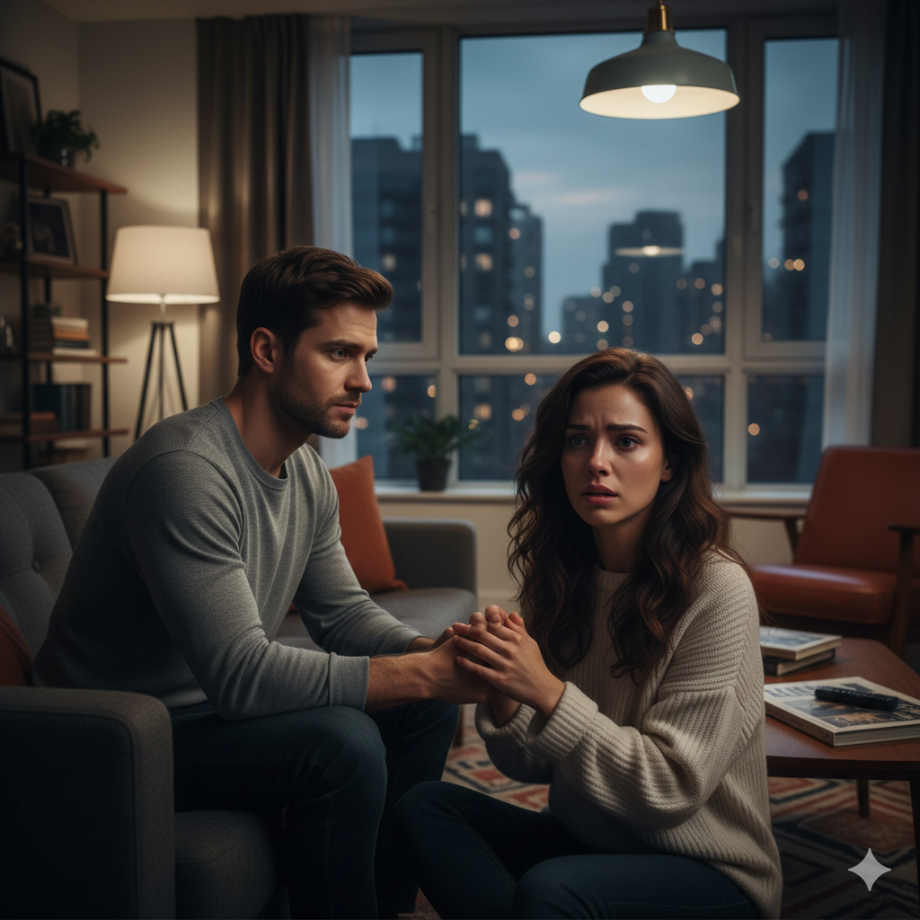 Алексей вернулся домой с тяжелым сердцем, но в душе теплилась надежда. Он знал, что должен поговорить с Анной, и, несмотря на страх, он чувствовал, что теперь у него есть шанс на новую жизнь. Он вошел в квартиру, и сразу же почувствовал, как в воздухе витает напряжение. Анна сидела на диване, смотря на него с выражением тревоги и решимости.