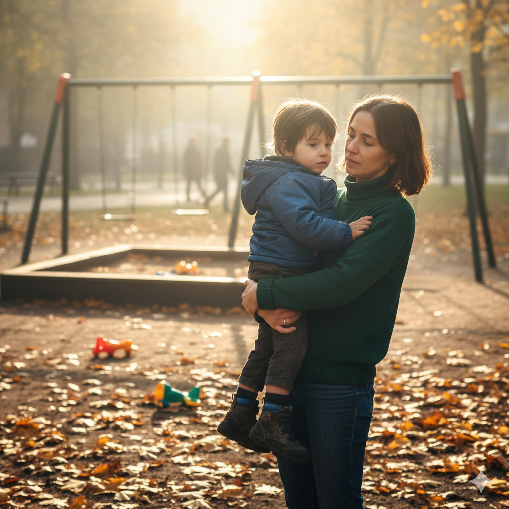 Она вздрогнула, открыла глаза и сначала ничего не увидела от яркого солнца. Она силилась отыскать голубую курточку – в одном самолетике, в другом, потом на качелях… Нигде нет.