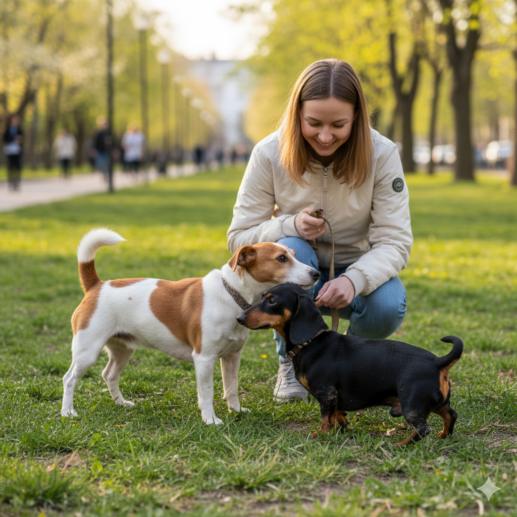 Почему? Да хотя бы потому, что хозяин этой коротконогой гладкошерстной красотки вряд ли подпустит его к ней. Нет, он точно не подпустит. Даже на пушечный выстрел.