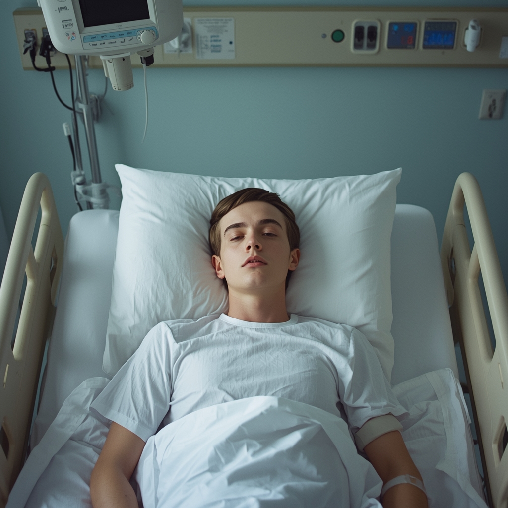 Сашу мы нашли в палате интенсивной терапии. Он лежал бледный, с капельницей, глаза полуприкрыты. Дышал тяжело.
