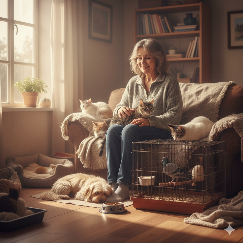 Кошки, коты, собачки, птицы с перебитыми крыльями — как-то все уживались. Наверное, их сплачивала любовь. Взаимная. И к человеку, спасшему их, и к друг другу.