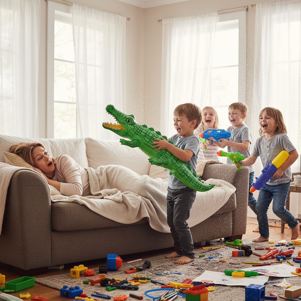 В это время в гостиную, где лишь пару минут назад мирно отдыхала Надежда, вбежали ещё два мальчика примерно того же возраста, что и сын Павла, а также пятилетняя племянница Надежды.