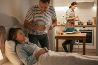 Очнулся Дима в сумерках. Рядом сидит очень грустный отец.