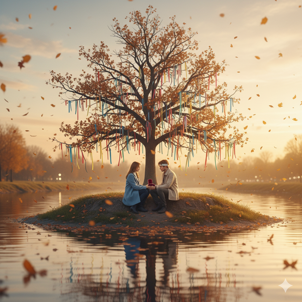 Она надела кольцо, а древний дуб тихо скрипнул и замер, оставив влюбленных в тишине.