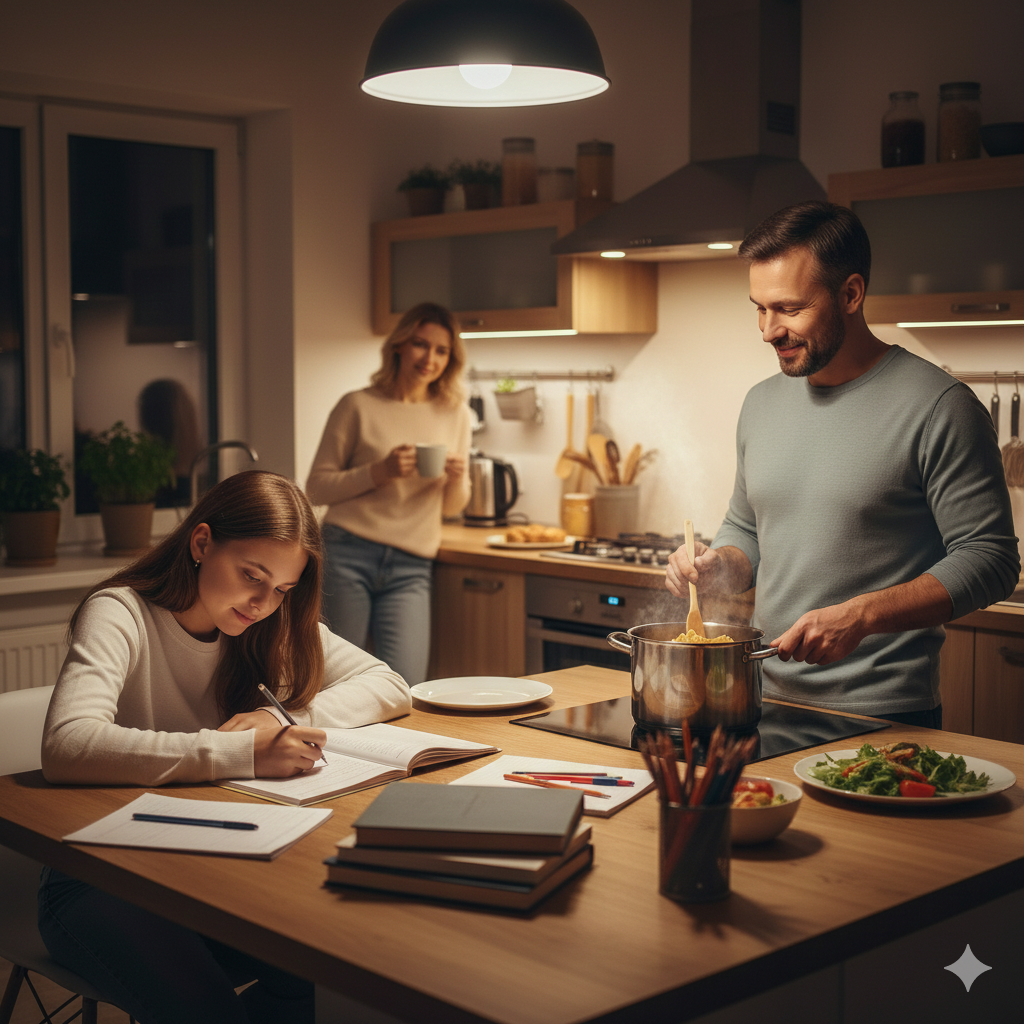 Когда я вернулась через три дня, дома было подозрительно тихо. Никаких хлопающих дверей, никаких язвительных комментариев. Маша сидела за кухонным столом и делала уроки, Олег что-то готовил у плиты.