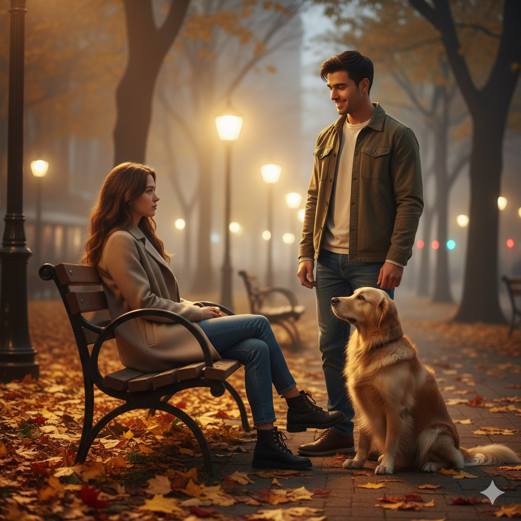 Задержавшись на работе допоздна, Серафима вышла из офиса. Стояла осень, горели фонари, желтые листья в свете фонарей кружились и падали на землю. Воздух влажный и загадочный, фонари отбрасывали блики на оставшиеся кленовые листья на деревьях.