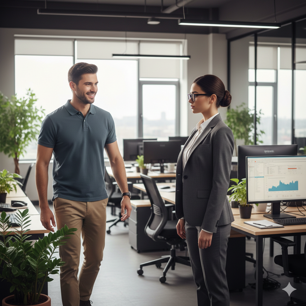 В первый же рабочий день. за полчаса до начала работы на новом месте мне пришло сообщение в мессенджере от начальника: “Алексей, я задерживаюсь, буду к обеду. Все документы подписал, сотрудников предупредил. Найдёте системщика Игоря, он покажет вам ваш стол, подключит комп к корпоративной сети, даст пароли. Изучайте правила, знакомьтесь с сотрудниками. Я приеду, займёмся конкретной работой.”