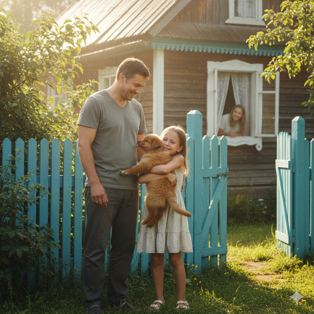 В тот же день, когда глава семейства, наконец, докрасил забор, Настя умудрилась незаметно провести своего щенка на участок и спрятала его рядом с сараем, куда никто из родителей не ходил, потому что внутри ничего не было.