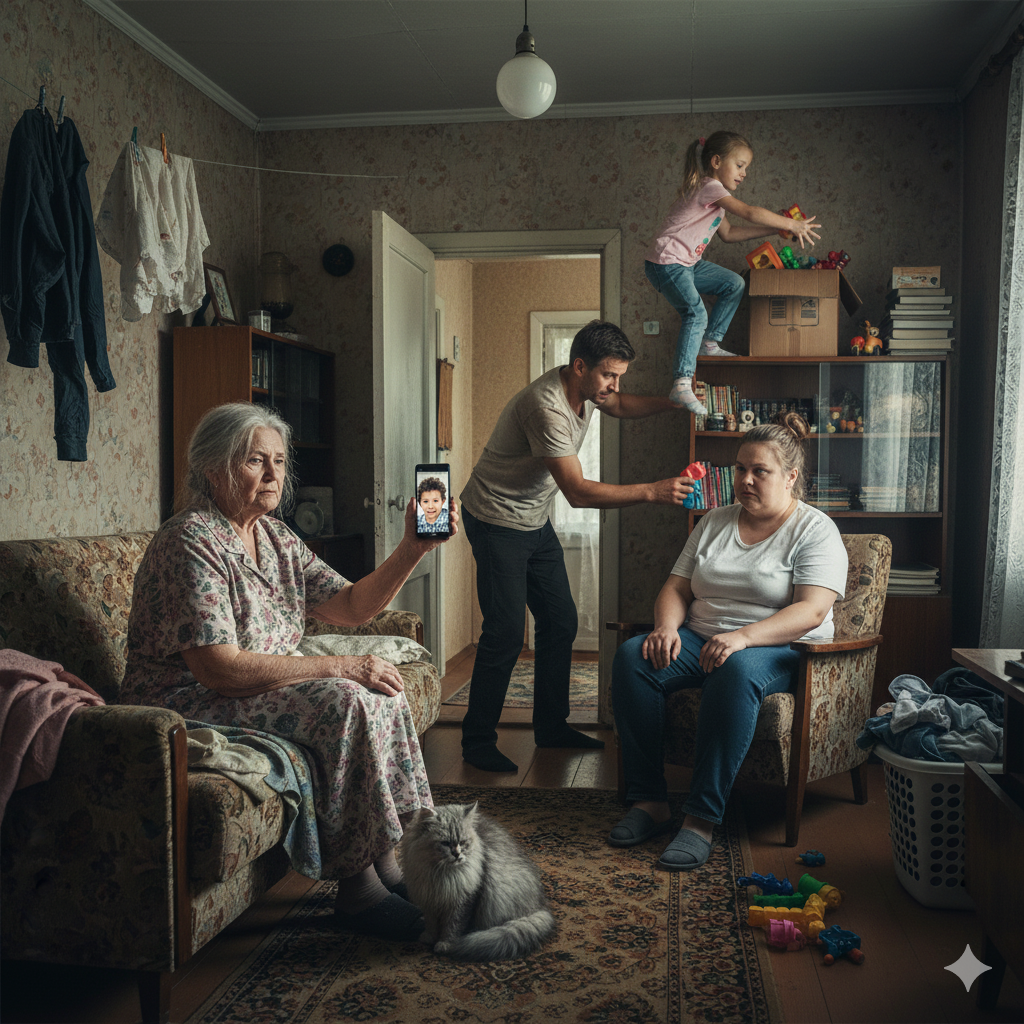 Весь вечер, вместо беседы, Дарья Васильевна с Сашей носились за ребенком, чтобы хоть на минутку успокоить Ксюшу. Итог: два разбитых блюдца, разлитый сок по скатерти и закиданный хлебными крошками кот. Кстати, бедное животное вообще старалось спрятаться чуть ли не под плинтус. Но дело даже не в этом, а в равнодушном наблюдении за всем этим действием самой Лены. Она сидела на кресле, как на троне, водила глазами, глядя на ребенка, и говорила Саше:
