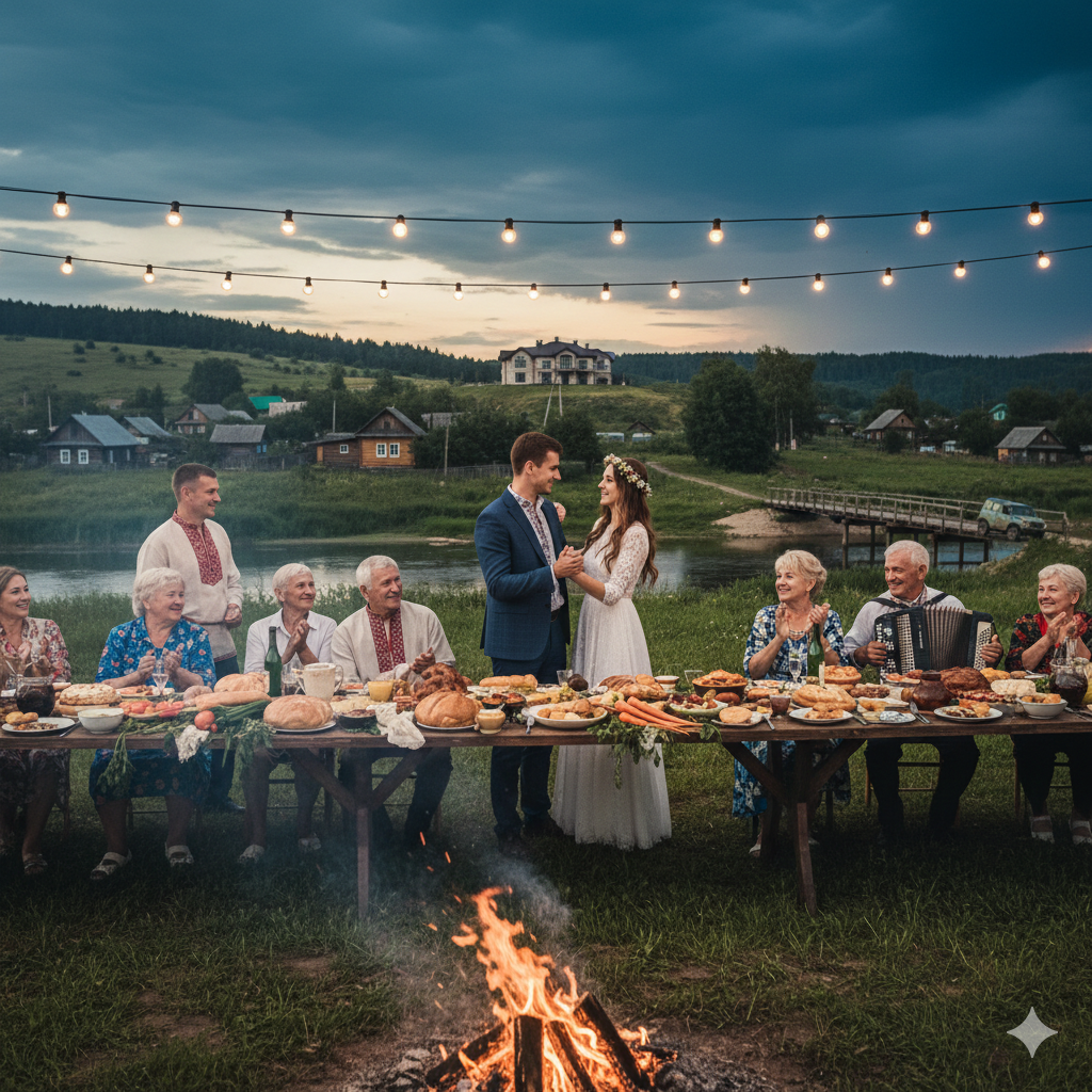 Вся деревня и дачники на их свадьбе гуляли и счастья им желали и радовались за Романа и Юлечку…