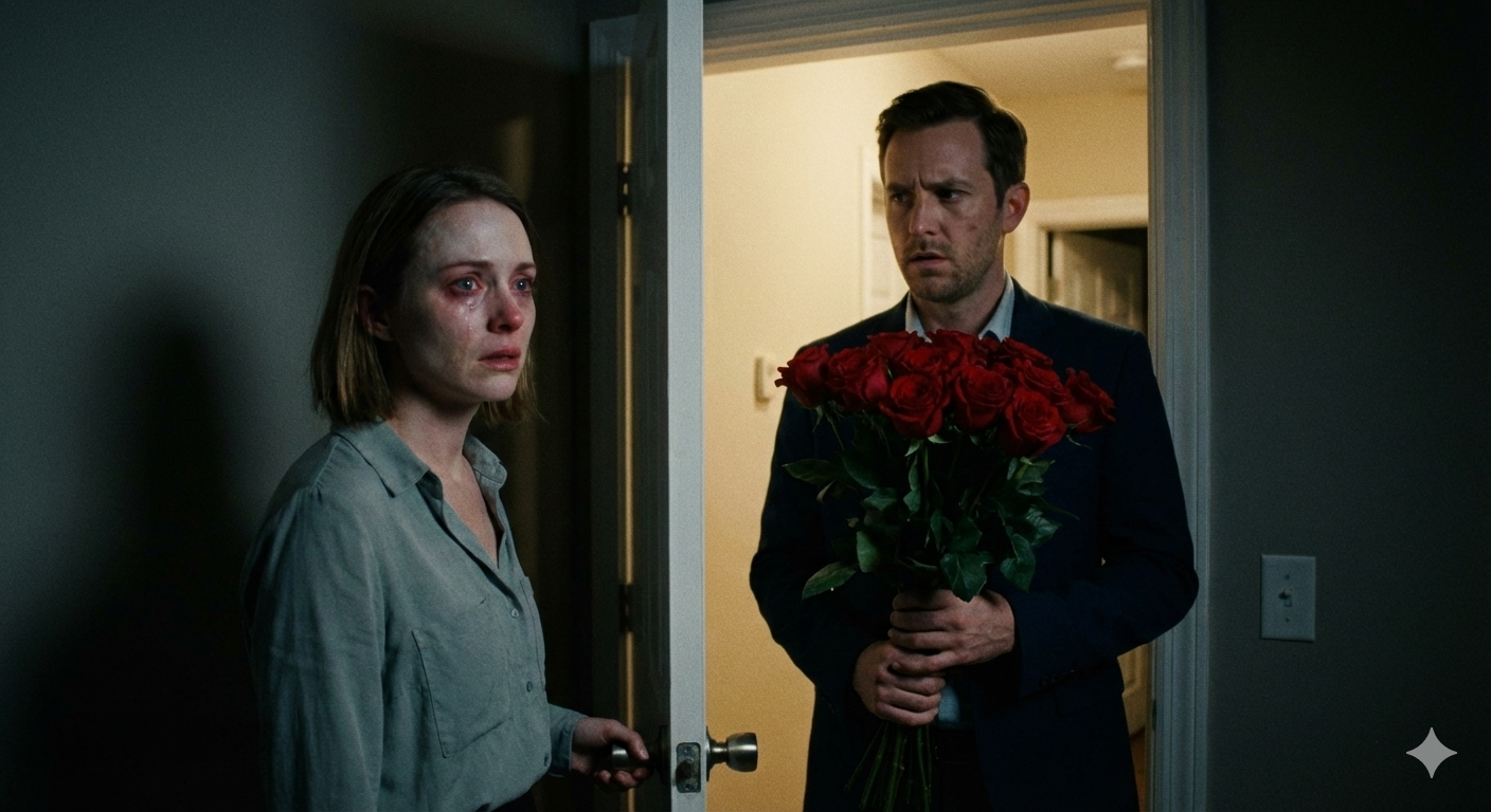 Она с трудом поднялась и подошла к двери. Открыв дверь, увидела Геннадия с огромным букетом роз.
