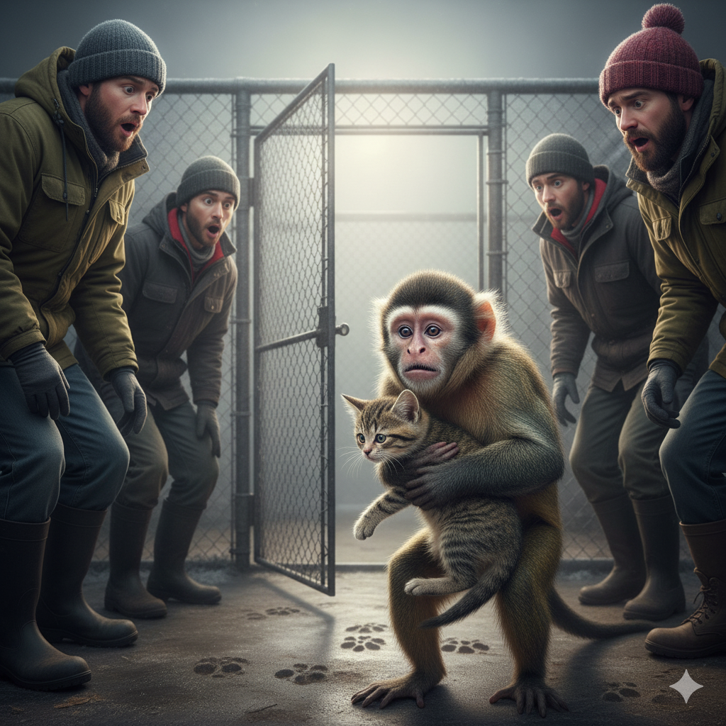 Вам может показаться это смешным, но в вольере жили четыре кота и одна обезьяна.