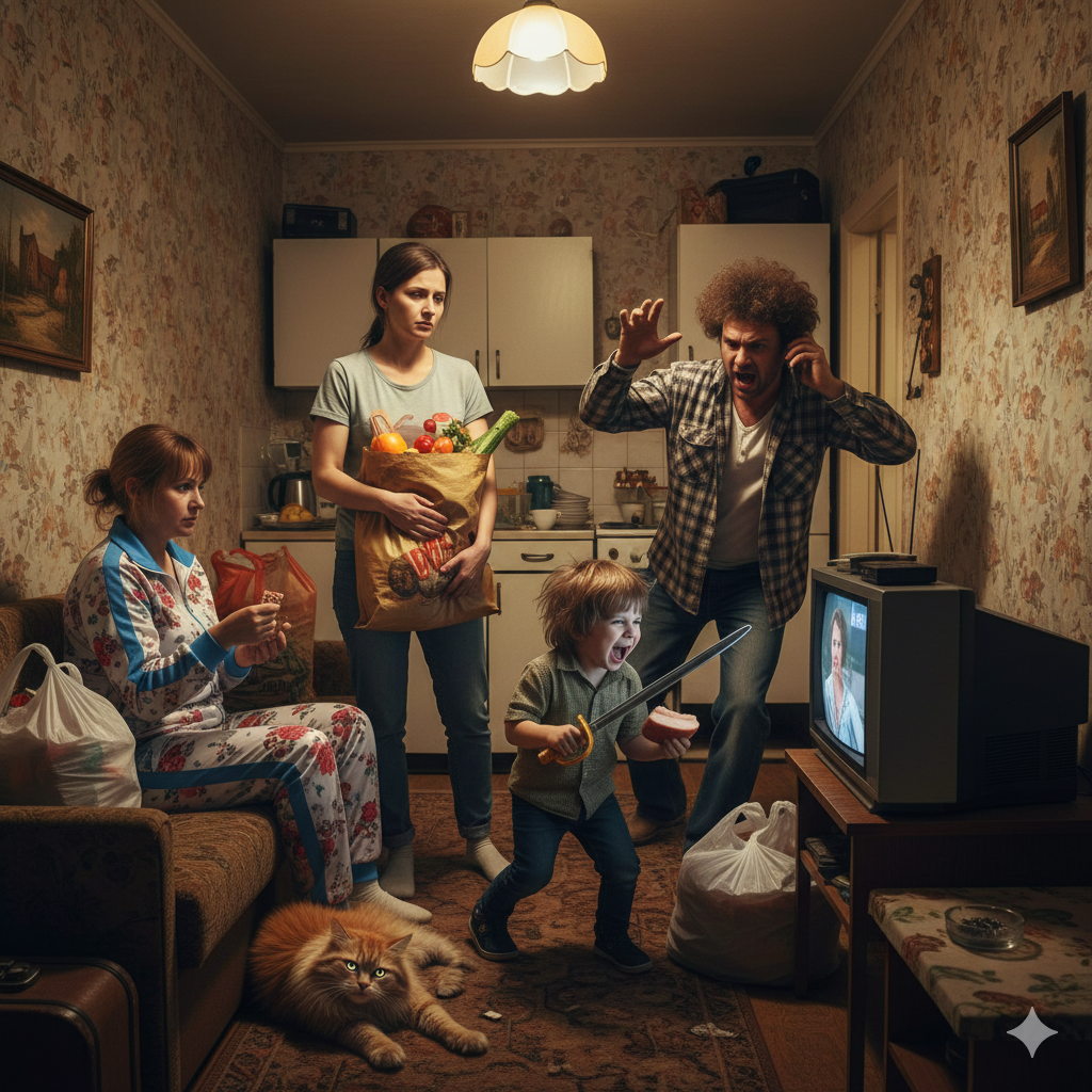 Старший мальчик Сема весь пошел в отца. Тоже с чубом, тоже горлопан. Травил анекдоты про Вовочку, предлагал всем сыграть в “Кошка сдохла”. Изредка запрыгивал к Оле на диван — покушался на несчастную саблю. Сима в эти моменты орал истошно, Сема в ответ заливисто гоготал.
