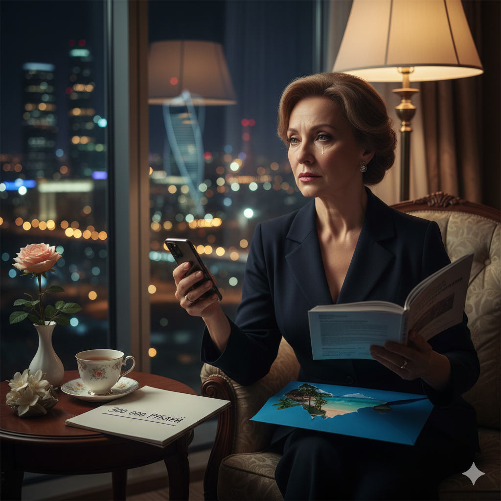 Пять тысяч. Регина молча встала из-за стола. Подошла к секретеру, достала конверт. В нём лежали путёвки на Мальдивы — две недели в пятизвёздочном отеле на берегу океана. Её подарок молодым на медовый месяц. Двести сорок тысяч рублей.