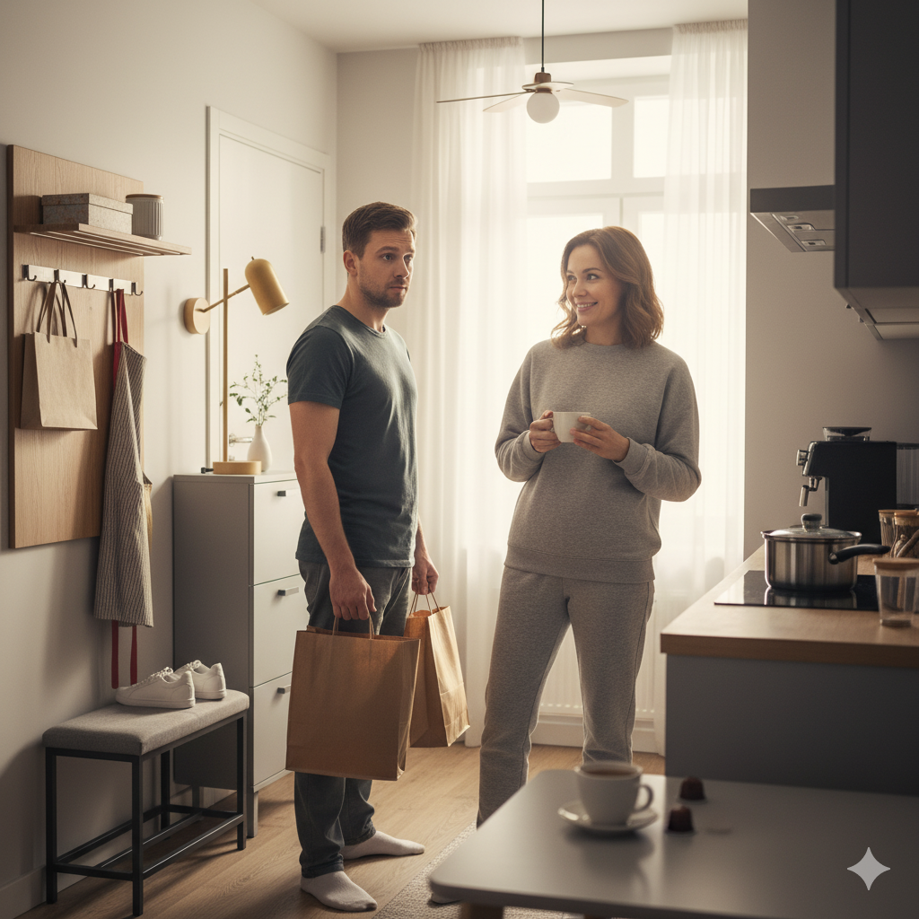 Лена купила полочку для ключей, новый светильник в прихожую. А еще тумбочку для обуви. Смотрела на коробки и думала, может, Витю пригласить, чтобы повесил и собрал?