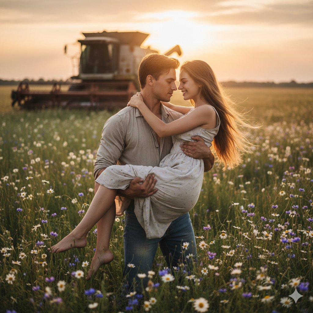 Он смотрел вдаль, по краю дороги увидел какое-то движение. С высоты комбайна увидел, бегущую Ксюшу, размахивающую руками с букетом полевых цветов. Волосы развевались на ветру, он остановил комбайн и выскочив из него, бросился к ней навстречу. Ему казалось, что бежит очень долго. Но вот они встретились и крепко обнялись.
