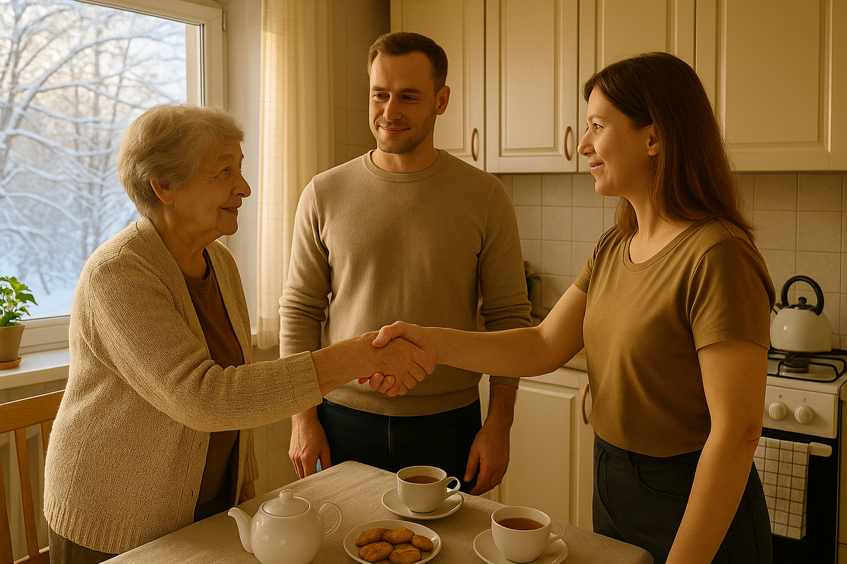 — Мам, привет! — Владик притянул ее к себе, чмокнул в щеку. Его куртка была холодной с мороза. — Вот, познакомься, это Лидия, она будет помогать тебе по хозяйству. А это моя мама, Софья Павловна.