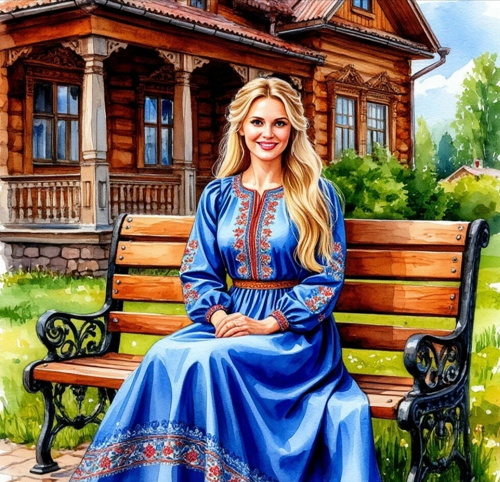 Она сидела на скамье возле красивого дома с башенками, как у принцесс в мультиках.