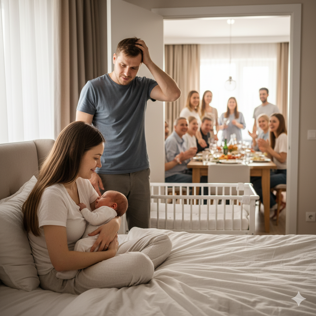 В семь часов вечера квартира Сорокиных наполнилась гостями… Все поздравили молодых родителей, вручили подарки, а затем уселись за накрытый стол. Все, кроме Кати. Потому что, как только началось шумное застолье, спящий малыш проснулся…