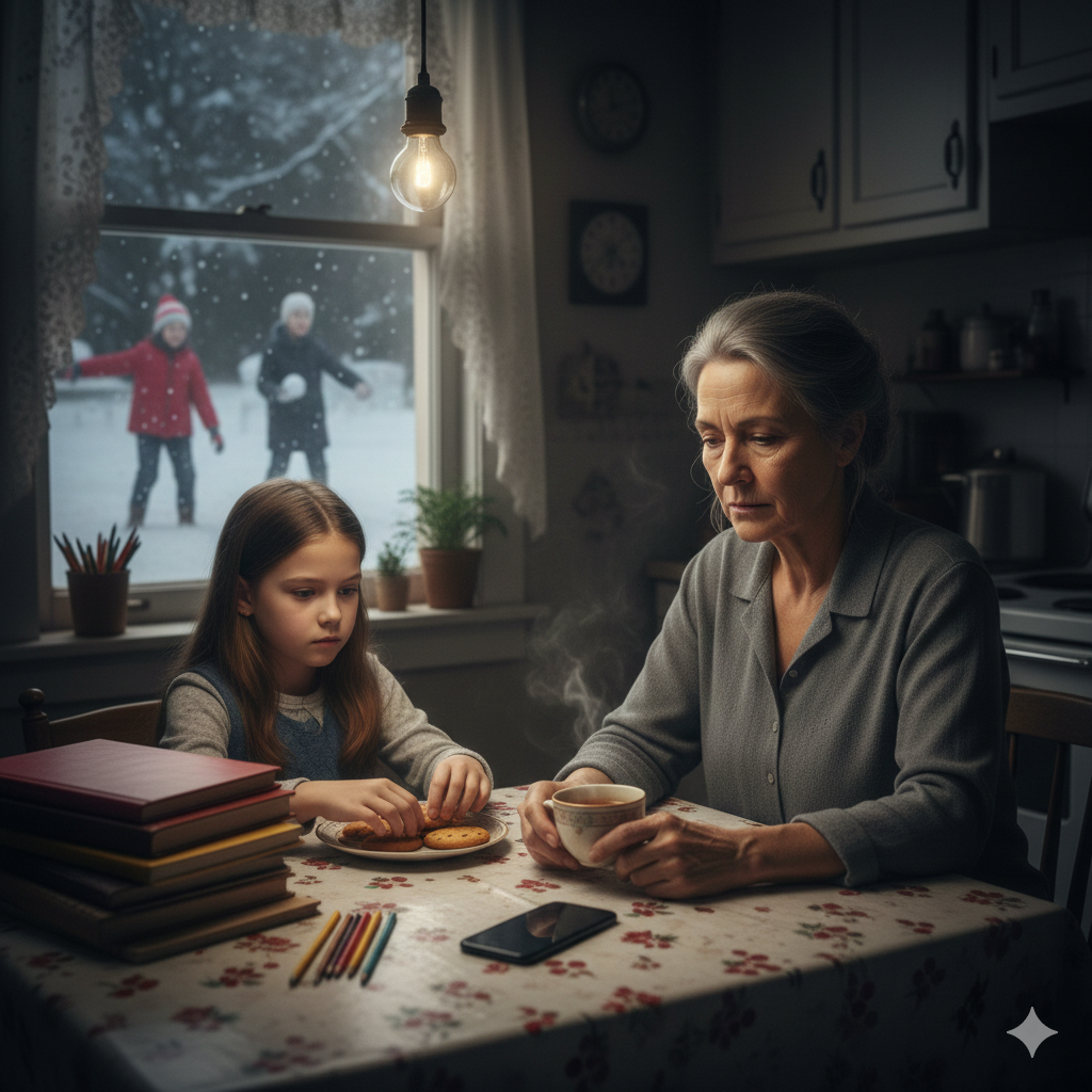 Она налила себе чай. Села у окна. Во дворе дети играли в снежки. Смеялись. Катя вернулась к тетради.
