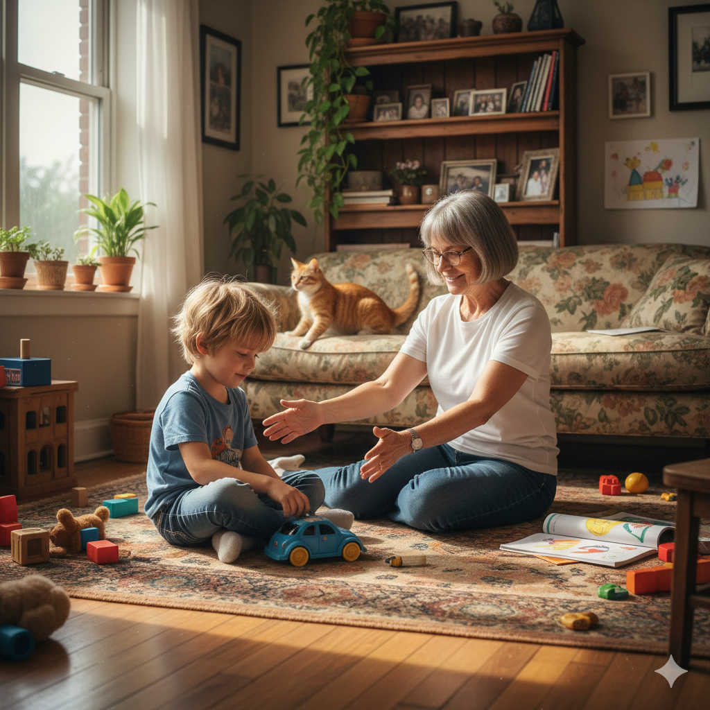 — А теперь иди ко мне, мой хороший, дай обниму. Ты уже такой большой, такой славный мальчик. Уверена, что и умный тоже — иначе и быть не может, ты ведь мой внук.