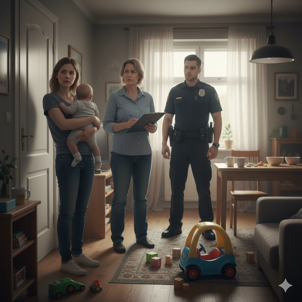Она открыла дверь, держа ребёнка на руках. Один из мужчин, постарше, с внимательным, немного усталым взглядом, представился следователем. Второй, помоложе, молча достал блокнот.