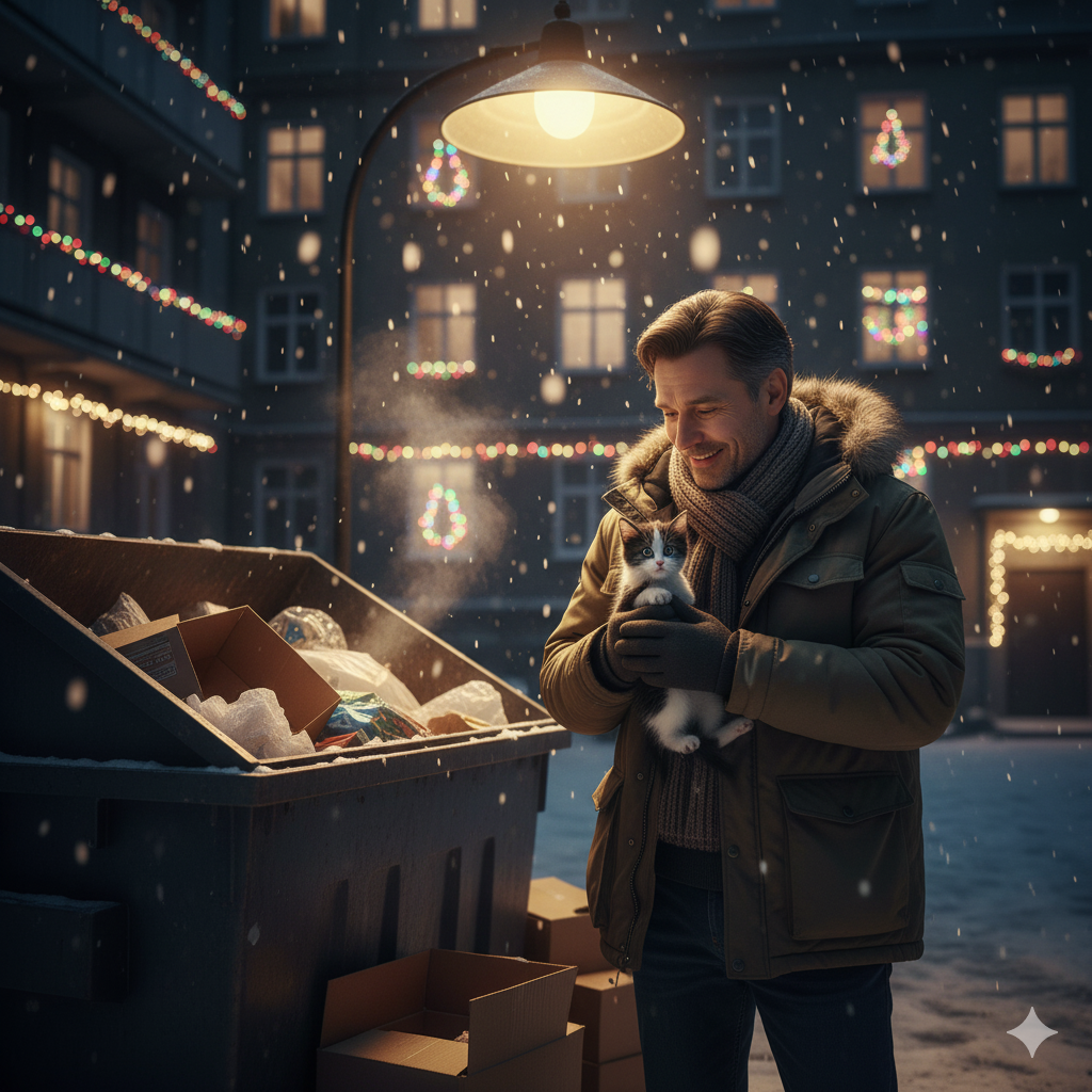 Через час с небольшим котенок был помыт, высушен феном, накормлен и сейчас сидел на полу, аккуратно трогая своей лапкой новогоднюю гирлянду, которую Игорь всё так же пытался починить. Светлана была на кухне и уже накрывала на стол.