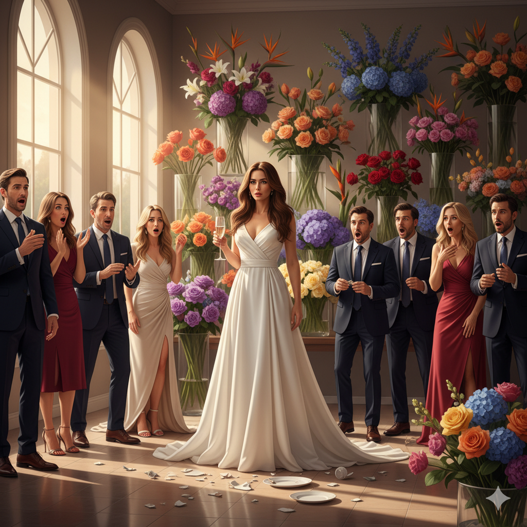 Даша стояла посреди зала, разгорячённая, с растрёпанными волосами. В одной руке бокал с шампанским, в другой — собственная фата, которую она тут же швырнула в лицо свекрови.