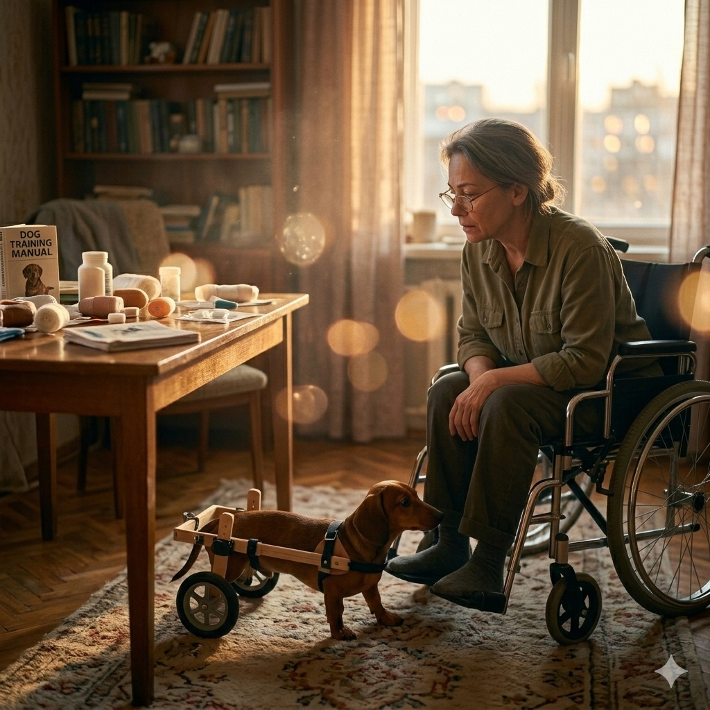 А тем временем где-то в одинокой квартире у окна сидела девушка в инвалидной коляске. Она всматривалась в ночную мглу и прижимала к себе маленького шпица, который тихо скулил.