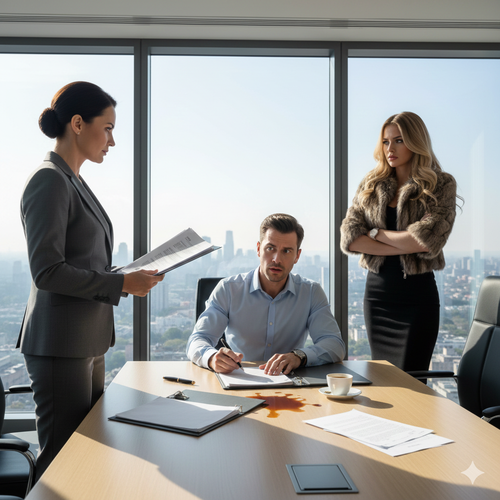 Алина закрыла глаза и сделала глубокий вдох. Она всегда гордилась своей способностью сохранять ясную голову даже в самых напряжённых ситуациях. Именно это качество помогло ей пробиться по карьерной лестнице в юридической фирме, где она работала главным специалистом по договорам. «Соберись, Алина,» — сказала она себе. — «Это не клиент и не оппонент в суде. Это твой муж.»