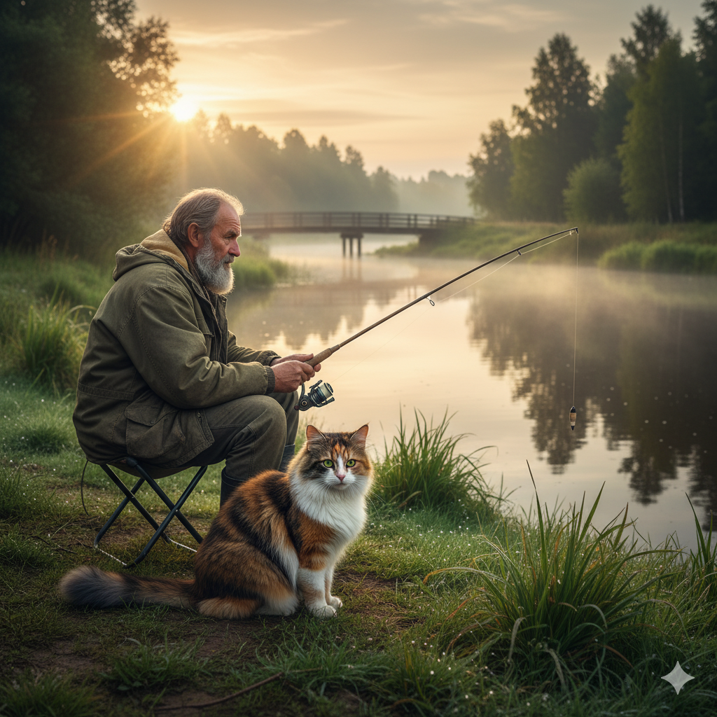 Никанорыч вздохнул только и опять удочку закинул. Кошка, чего с неё взять! Сидит так, ловит, а краем глаза замечает, что рядом словно тень промелькнула.