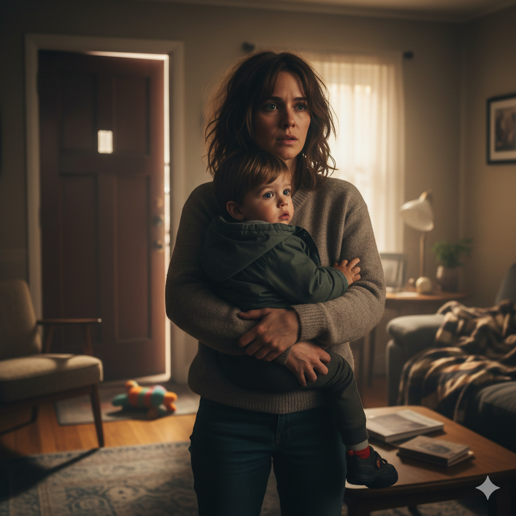 Мила зашла в комнату, присела. Ваня застеснялся и прижался к матери.