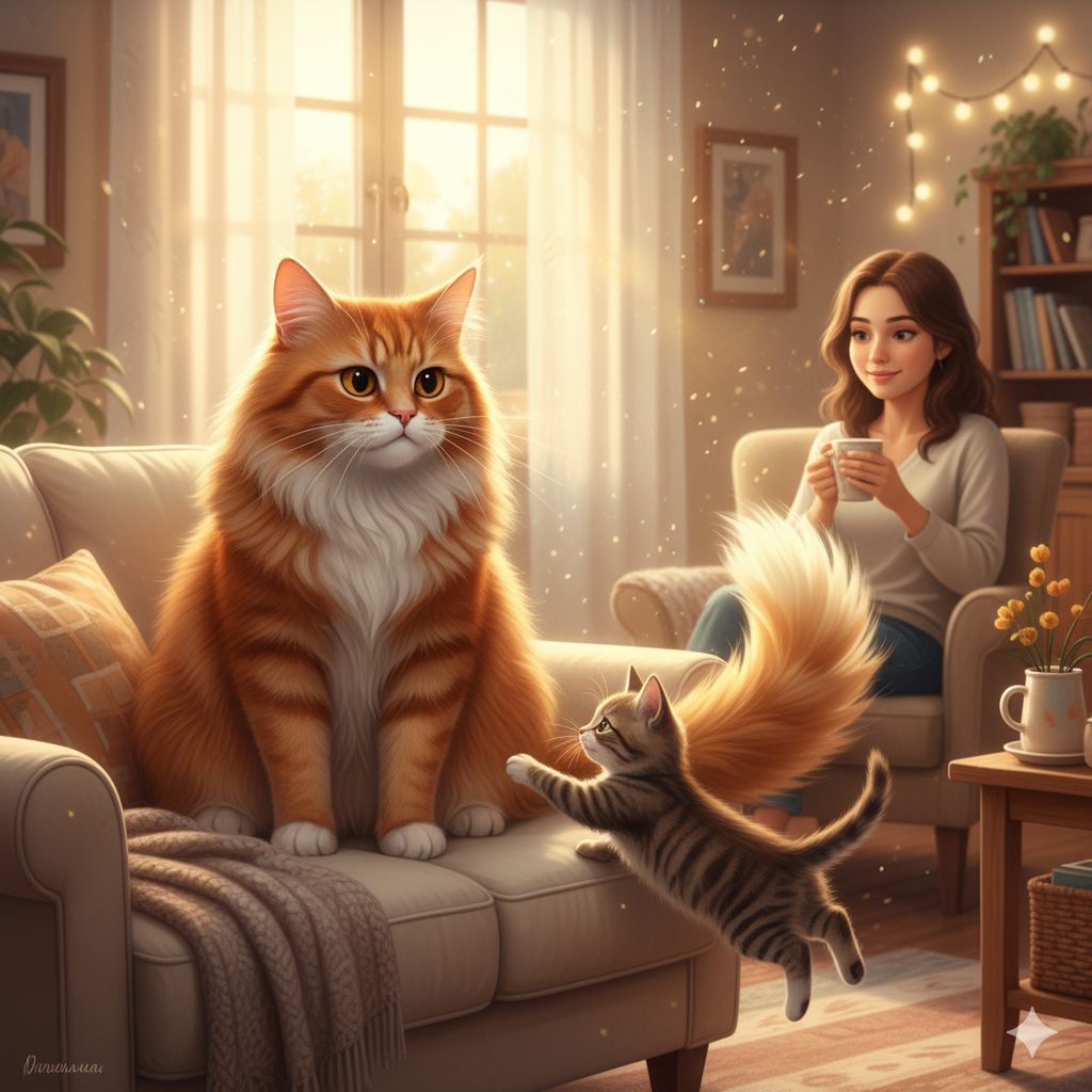 Тьфу! А еще она взяла моду играть с его хвостом. То прыгала через него, то охотилась… Филимон стоически терпел, но должен же быть предел страданиям?