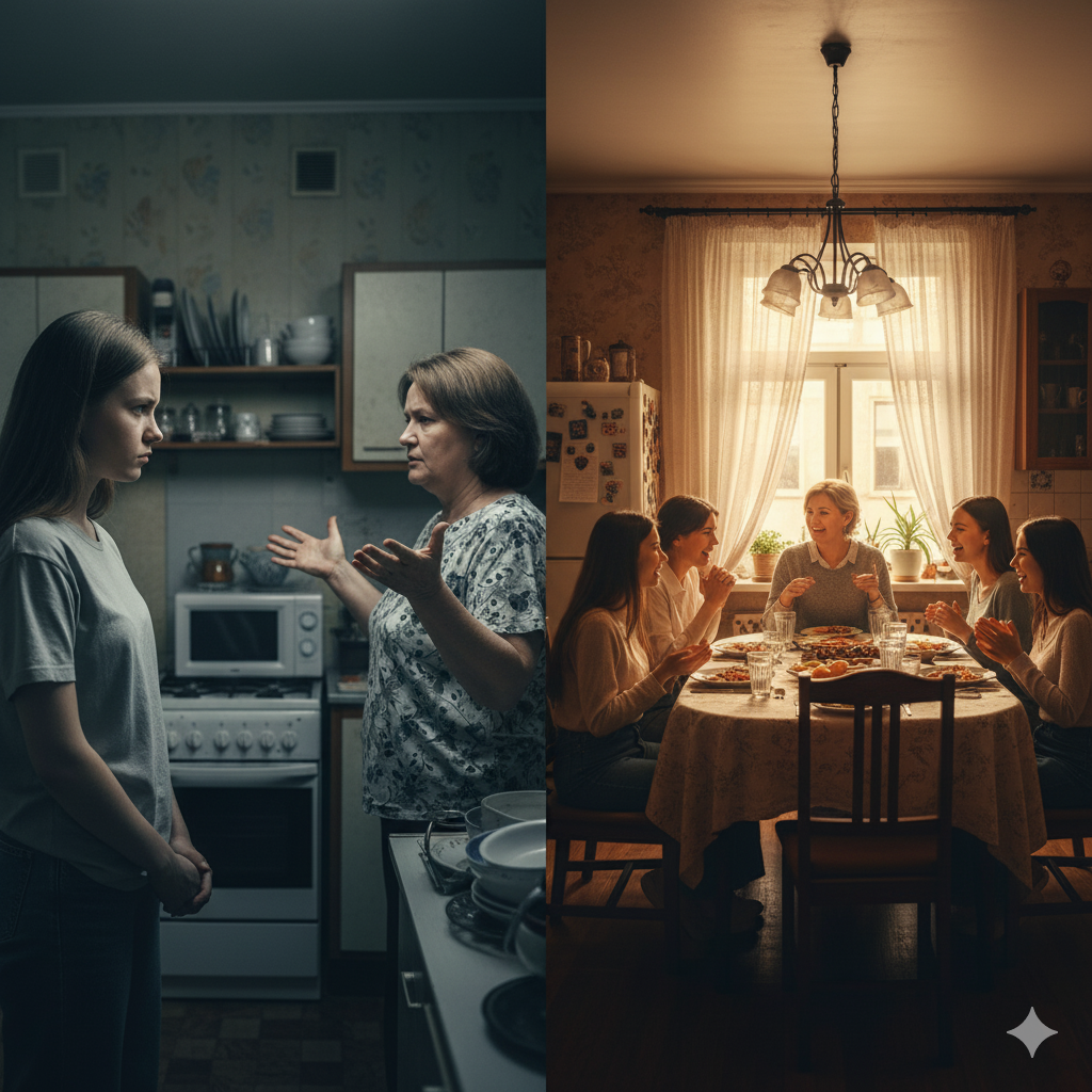 Расстроенная, Людмила ушла к будущему мужу и будущей свекрови. Те встретили ее накрытым столом и обсуждением планов на будущее.