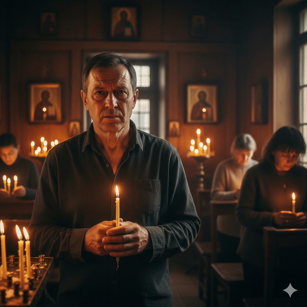 — Молодой человек, подойдите сюда. Вот держите. Поставьте эту свечу Целителю Пантелеймону, а эту Николаю Чудотворцу.