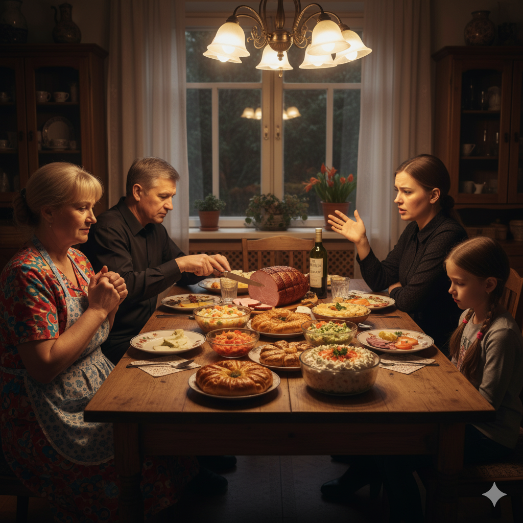 Вечером, когда Виктория с семьёй уехали домой, обстановка за столом заметно оживилась.