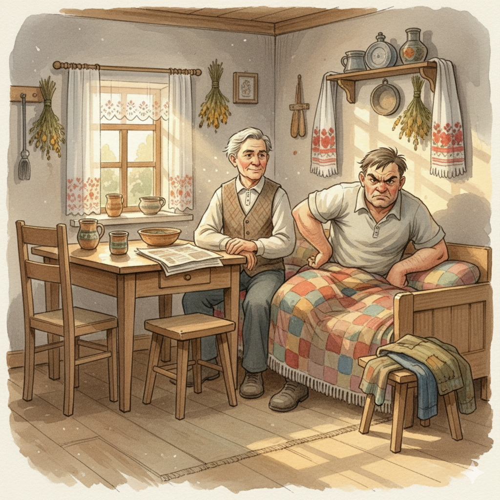 — Да нет, Степан Ефимович! – продолжила стонать женщина. — Он решил голодать до смерти! Он даже воду не пьёт! А меня сейчас послал в сельсовет, насчёт могилы на кладбище хлопотать. Заранее. Спаси его, Степан Ефимович. Умоляю…