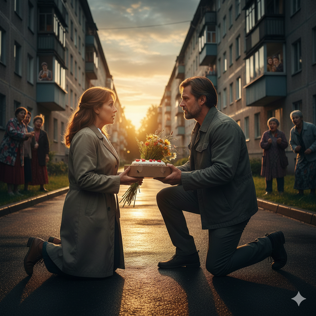 — Ксюша, прости, ради Бога прости, — вымаливал он у нее прощение, — ну хочешь на колени встану, только прости.