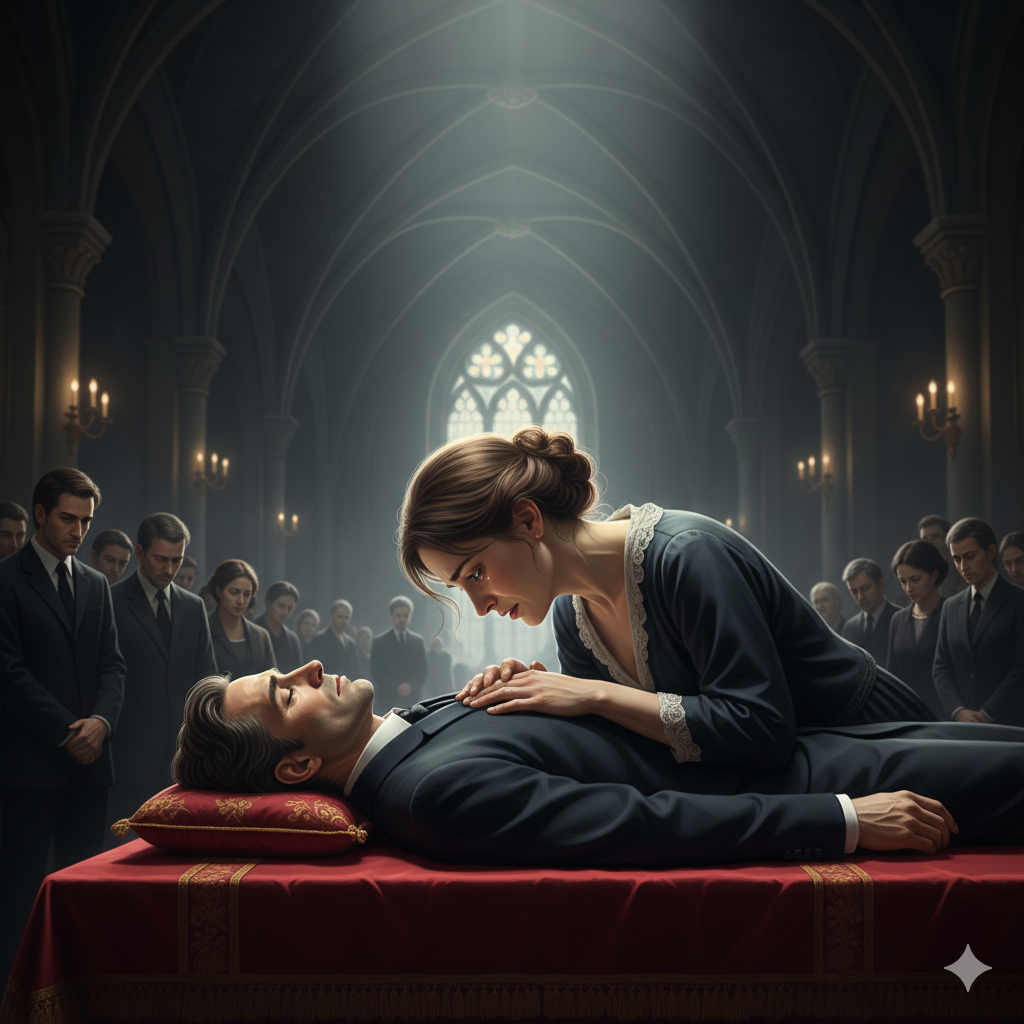 Руки спокойно сложены на груди, побелевшие, неподвижные.