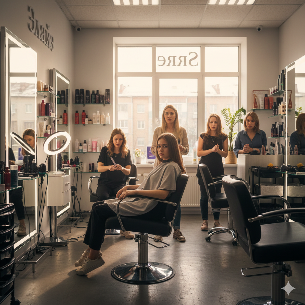 Наталья расплатилась и вышла из салона, а на ее место села Надя — клиентов по записи у Веры не было, и она согласилась подровнять коллеге кончики волос. «Забавно, — говорила она, накидывая на Надю пеньюар, — У тебя цвет волос такой же, как у Натальи — я только сейчас заметила. И длина волос такая же. Со спины можно перепутать.»