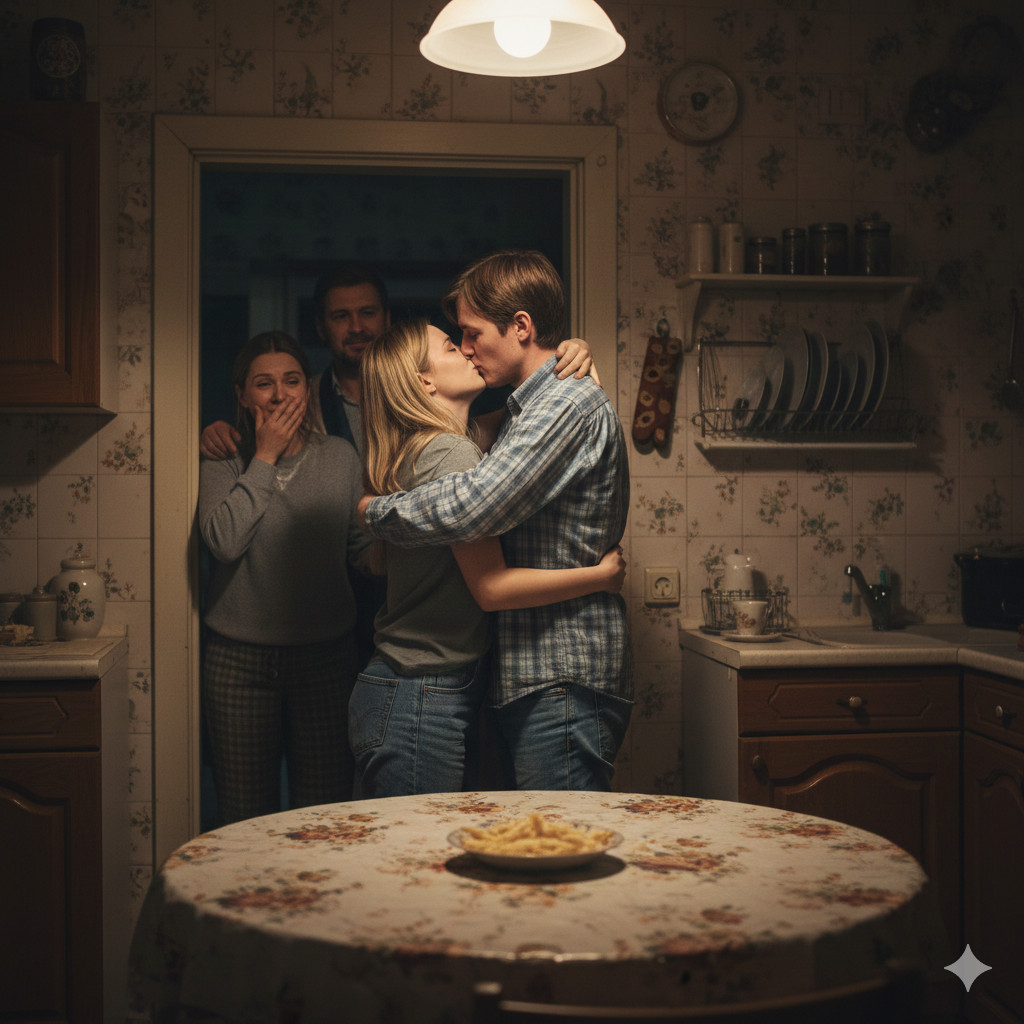 Заглянула в их комнату, те целовались и даже не заметили её.