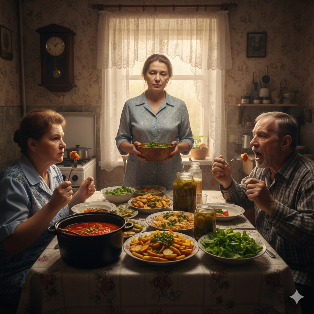 — И каждый раз встаю в пять утра, — продолжила Людмила. — Завтрак, обед, ужин на четверых. Потом весь день на грядках. Потом закатки. Потом снова готовка. Снова уборка. Каждую субботу и воскресенье. Четыре месяца подряд.