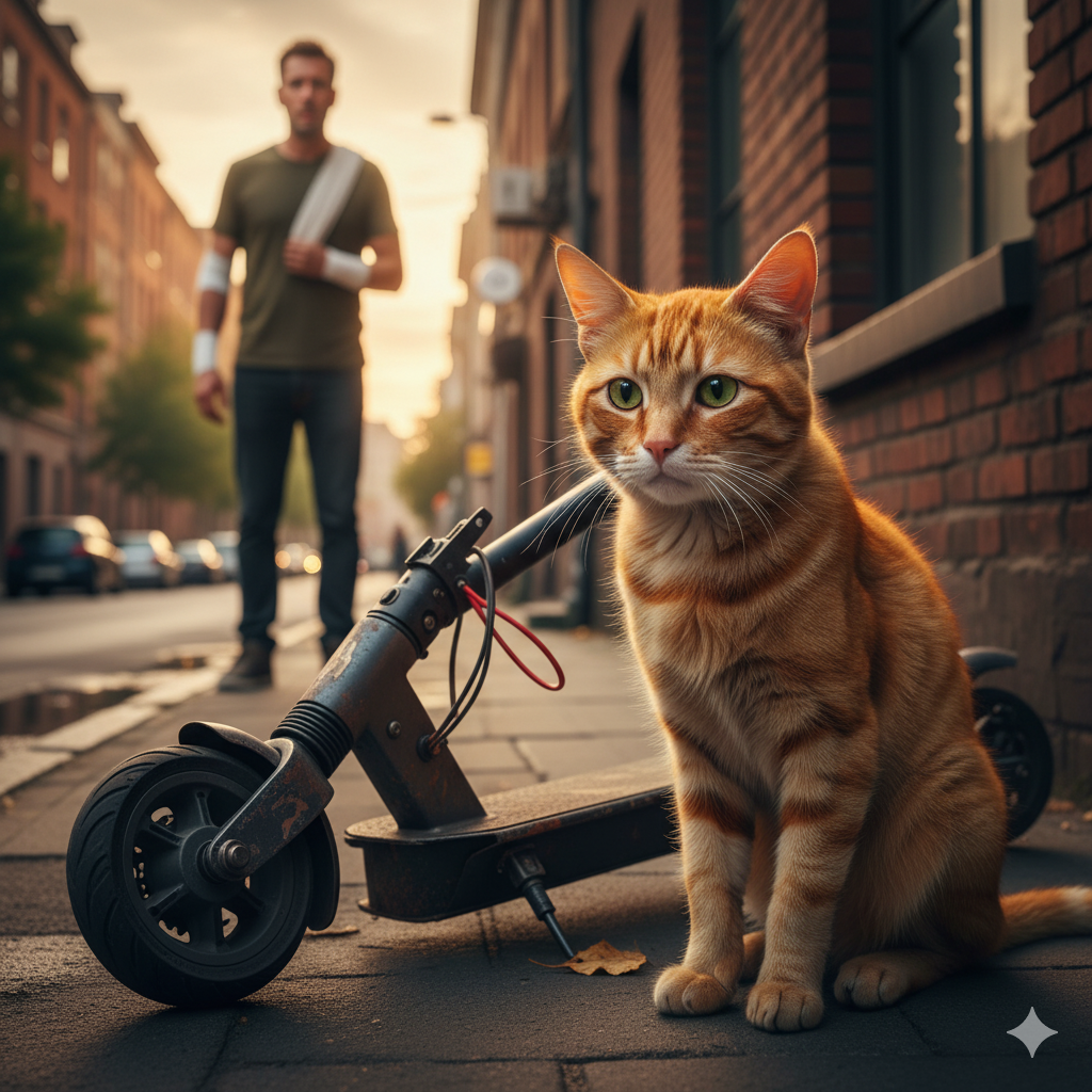 — Извините меня, но может вы, случайно, слышали и таком происшествии — мужчина на самокате с котом? С ними что-то случилось…