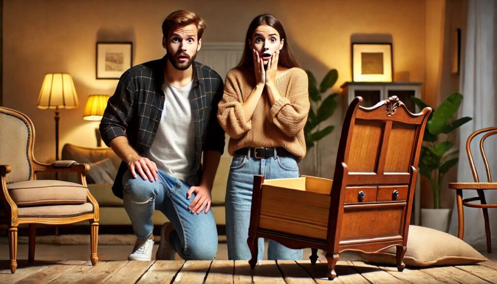 По возвращении я сразу почувствовала что-то неладное. Заходя в дом, я заметила, что в гостиной стоит какая-то старая мебель. Протертые кресла, потертый диван, который явно видел лучшие дни, и массивный шкаф, весь в царапинах.