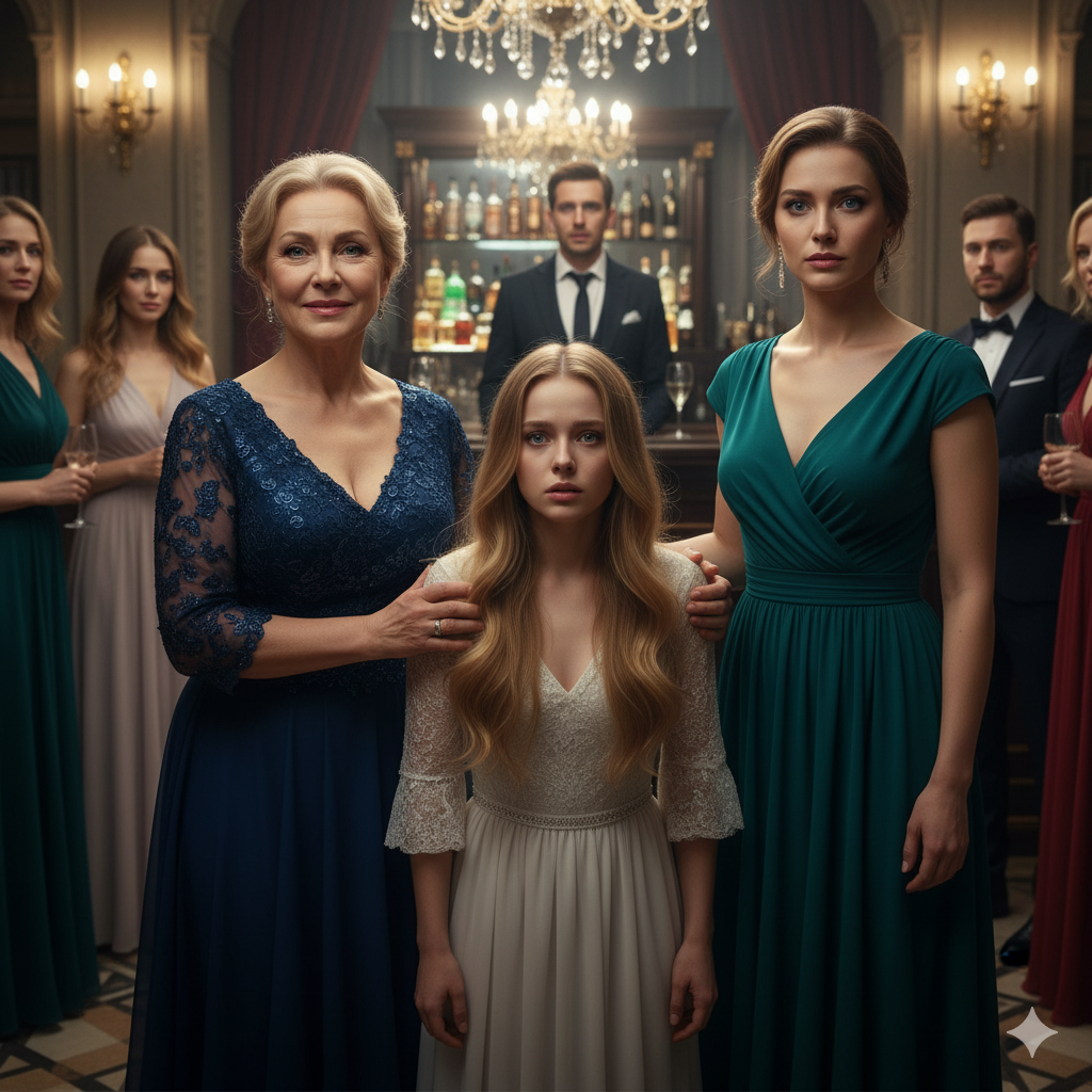Она стояла в центре зала, властно обнимая за плечи хрупкую девушку с волосами цвета расплавленного золота.