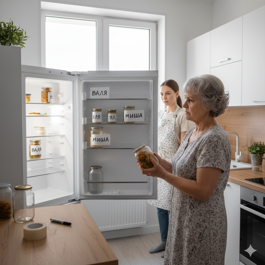 Зинаида Геннадьевна открыла холодильник утром, а там пусто, только баночки подписанные. Она достала одну.