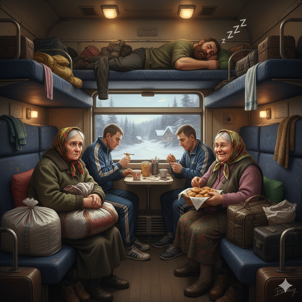 Инна Петровна села в поезд и тяжело вздохнула – ехать до сына двое суток, это очень долго! Она из дома-то редко выходит, только что в магазин и обратно, и дело не только в пандемии, а вообще – не любит она эту толкотню и людское общество. А здесь плацкартный вагон, у нее боковушка, народ туда-сюда снует, пахнет курицей, китайской лапшой и чьими-то жуткими носками. Сосед по боковушке запрыгнул наверх и тут же захрапел, будто он сможет так проспать двое суток. Инна Петровна разговорилась с соседкой рядом, доброй бабушкой, которая только кивала, улыбалась и не давала лишних советов.