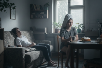 В то же самое время, когда Елена Николаевна разговаривала в самолёте с Эдуардом, Алина встречала мужа дома.